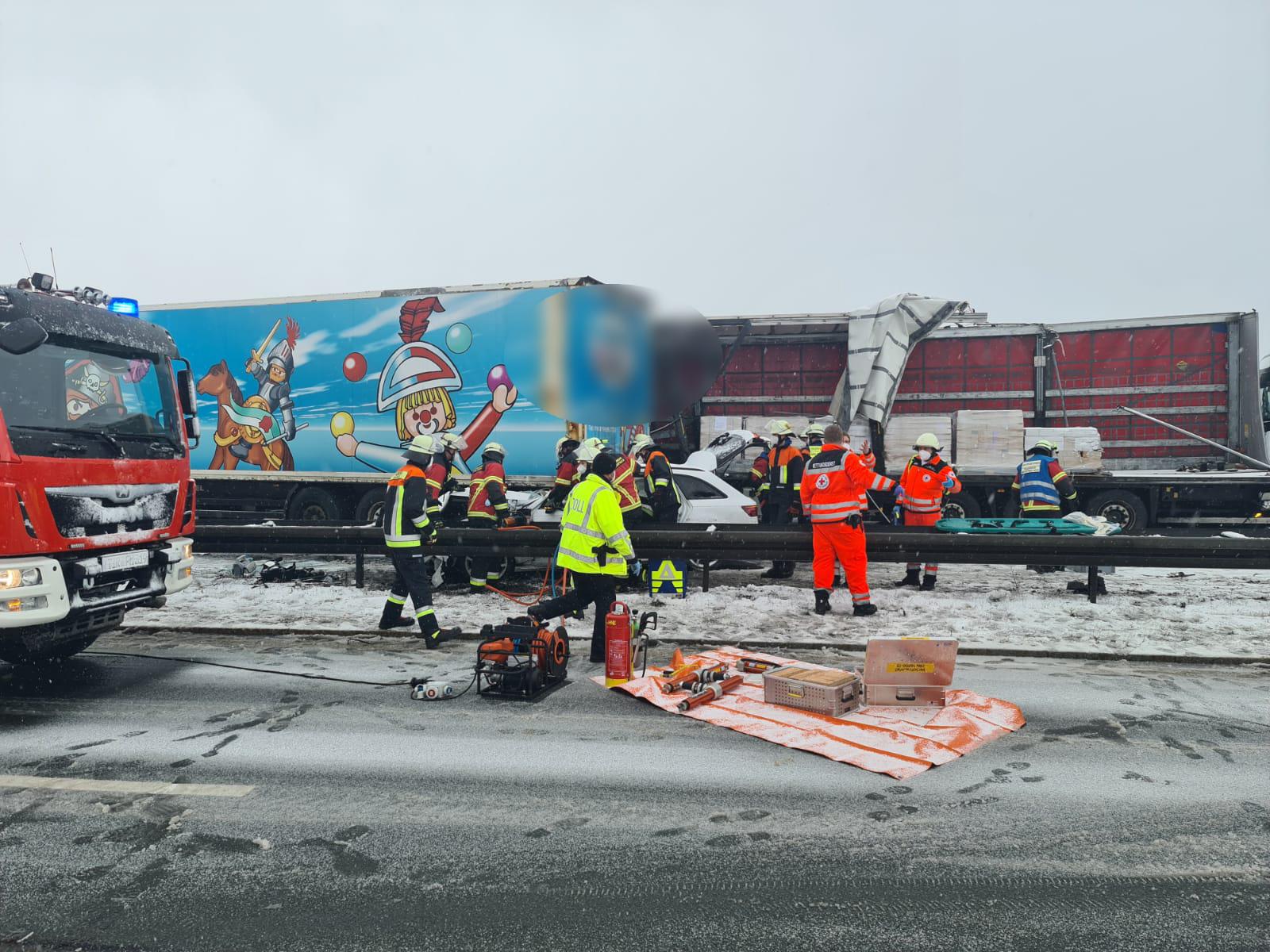 Es bildete sich daraufhin ein Rückstau, der ein zweites Unfallgeschehen nach sich zog. Laut einem Sprecher der Autobahnpolizei waren darin zehn Fahrzeuge verwickelt, darunter auch drei Lkw.