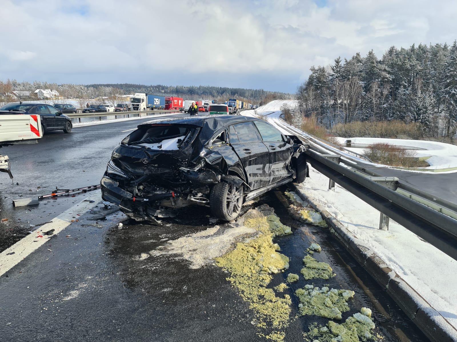 Bei Schneefall und glatter Fahrbahn kam es am Freitag gegen 13 Uhr auf der Autobahn A 93 zwischen den Anschlussstellen Pechbrunn und Mitterteich-Nord zu insgesamt fünf Unfällen mit 16 Fahrzeugen. Laut Polizei beträgt der Gesamtschaden 253 000 Euro.