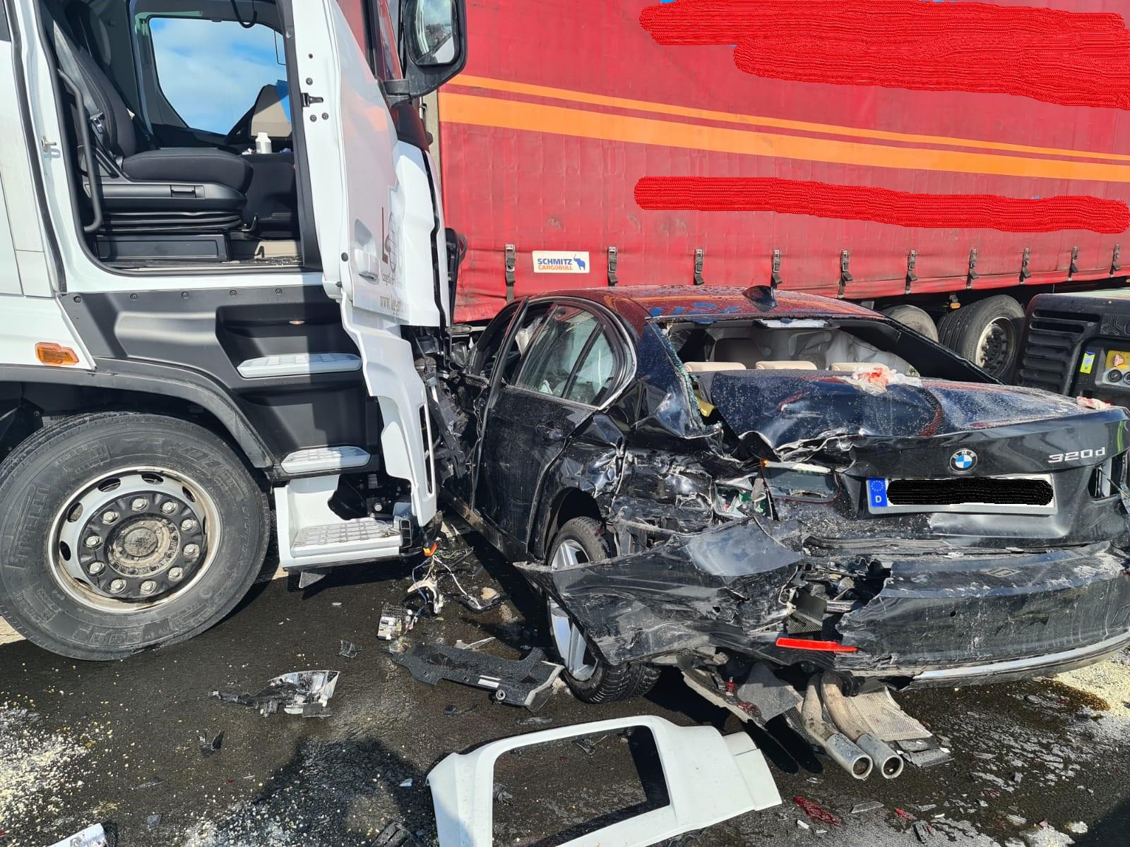 Der Fahrer eines VW-Polo hielt hinter dem Unfallfahrzeug des Österreichers an, um zu helfen. Der nachfolgende 51-jährige Fahrer übersah das Unfallauto sowie den VW-Polo. Er musste Notbremsen und nach links ausweichen. Dabei stieß er gegen das Heck des Polo und schob diesen in Richtung des rechten Fahrstreifens. Im Anschluss stieß er gegen die Mittelleitplanke. Von dieser prallte er ab und streifte den vor ihm fahrenden Kleintransporter. Die beiden Pkw-Fahrer wurden mit mittelschweren Verletzungen ins Krankenhaus eingeliefert. Der Fahrer des Kleintransporters blieb unverletzt.