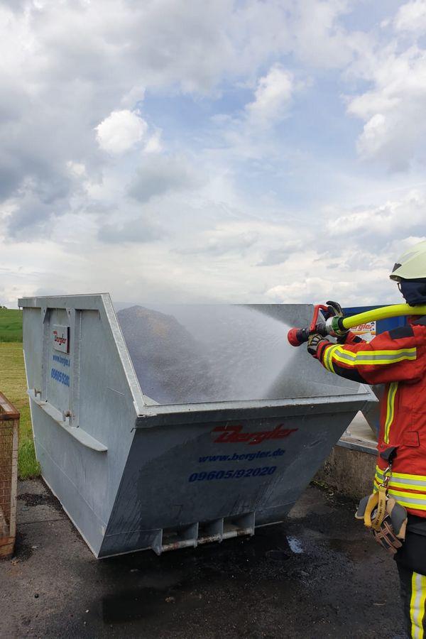 Nicht nur zum Gasaustritt rückten die Kräfte der Feuerwehr Kemnath am Samstag aus. Auch einen brennenden Container auf einem Firmengelände in der Bayreuther Straße galt es zu löschen.