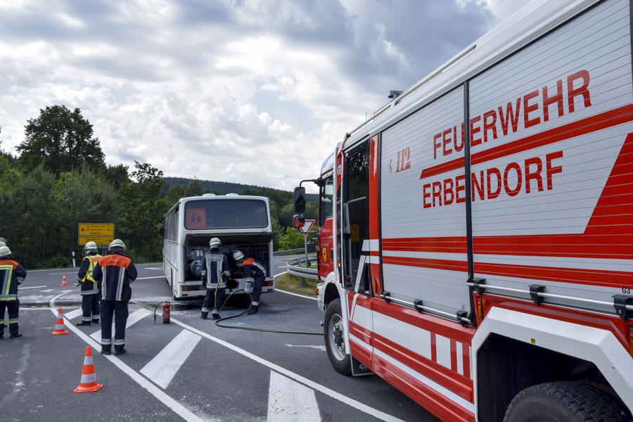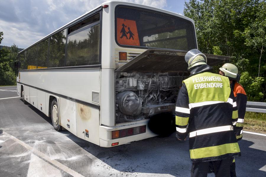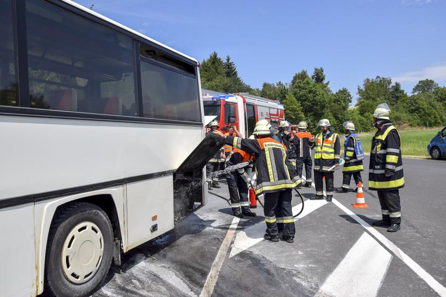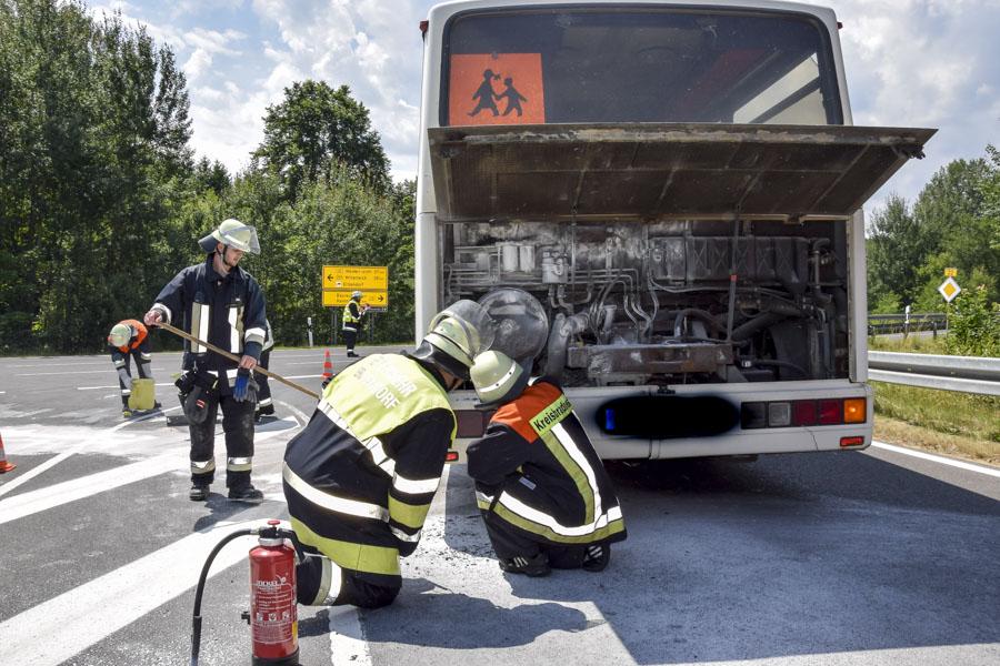 Der Fahrer des Busses führte erste Löschversuche mit einem tragbaren Feuerlöscher durch.