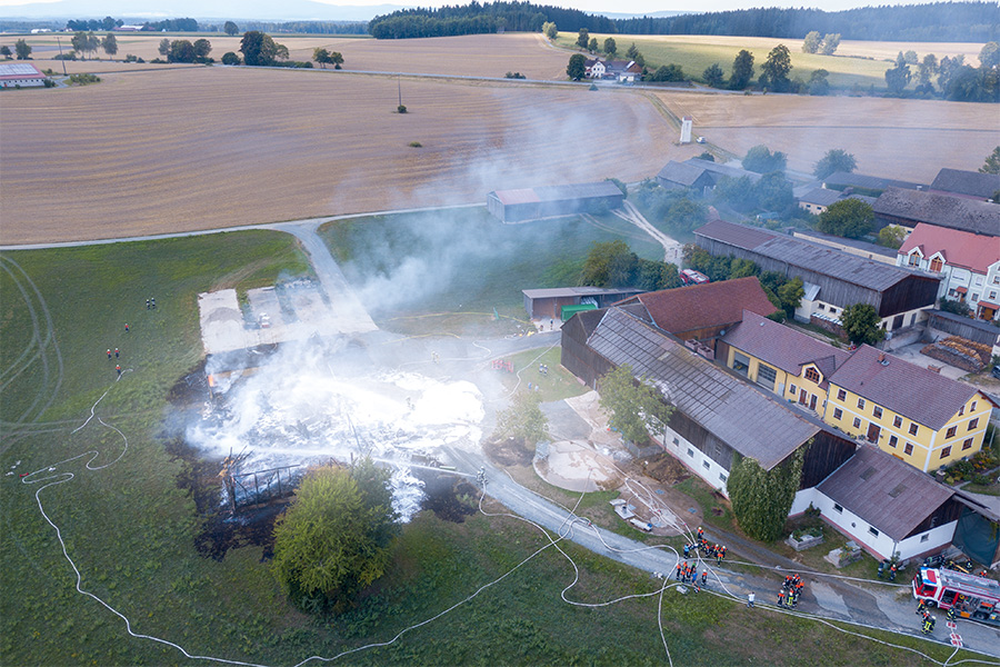 Luftaufnahmen angefertigt bei Nachlöscharbeiten von der Feuerwehr für Einsatzleitung und Polizei.
