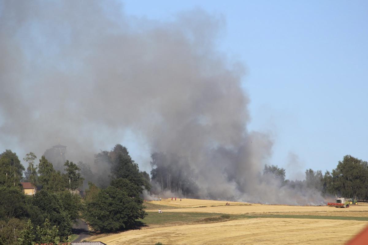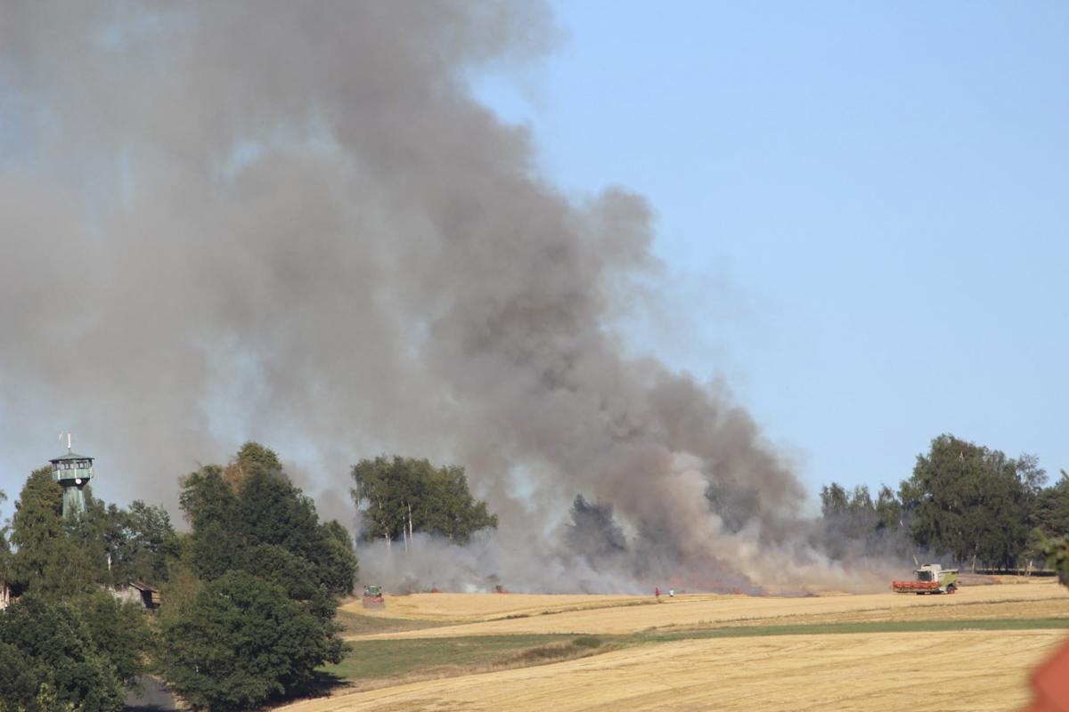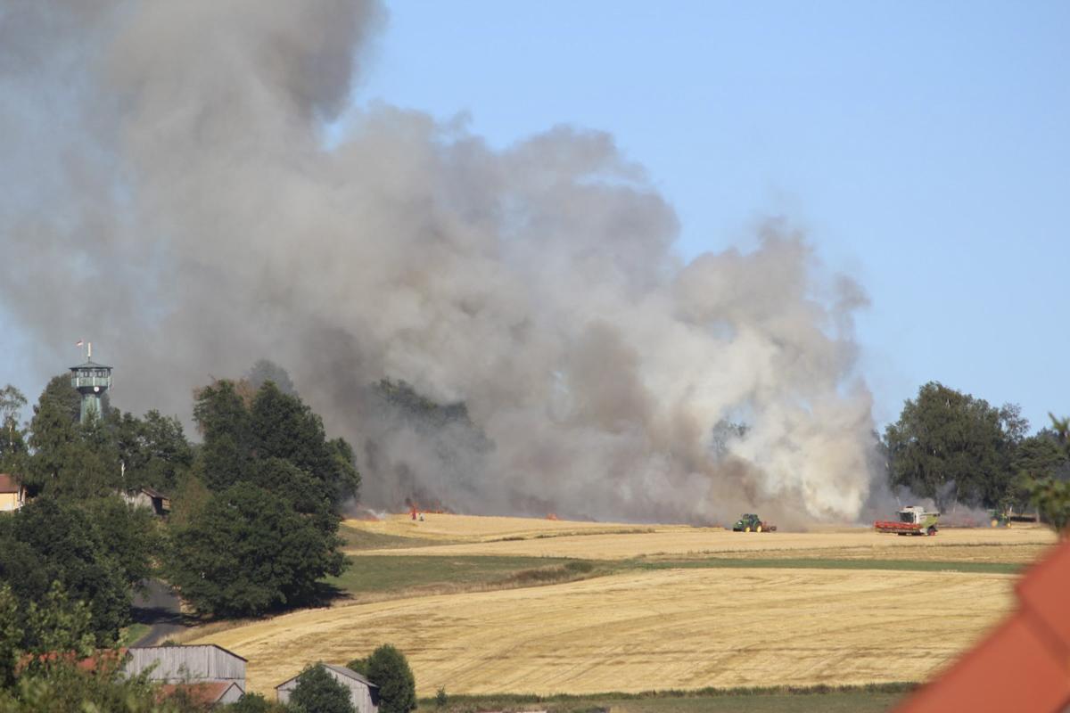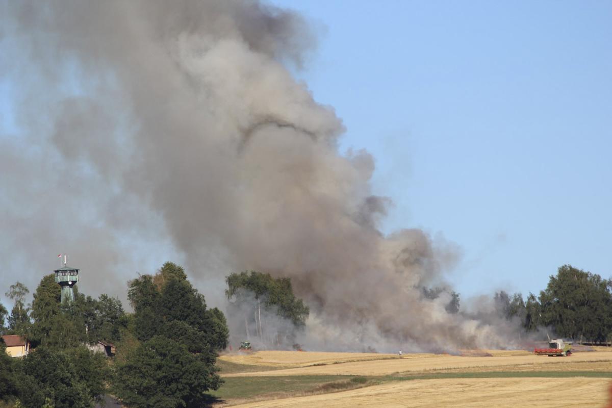Aufgrund der lang anhaltenden Hitze und wohl ausgelöst durch Drescharbeiten stand ein Getreidefeld beim Grenzlandturm in Neualbenreuth in Brand.