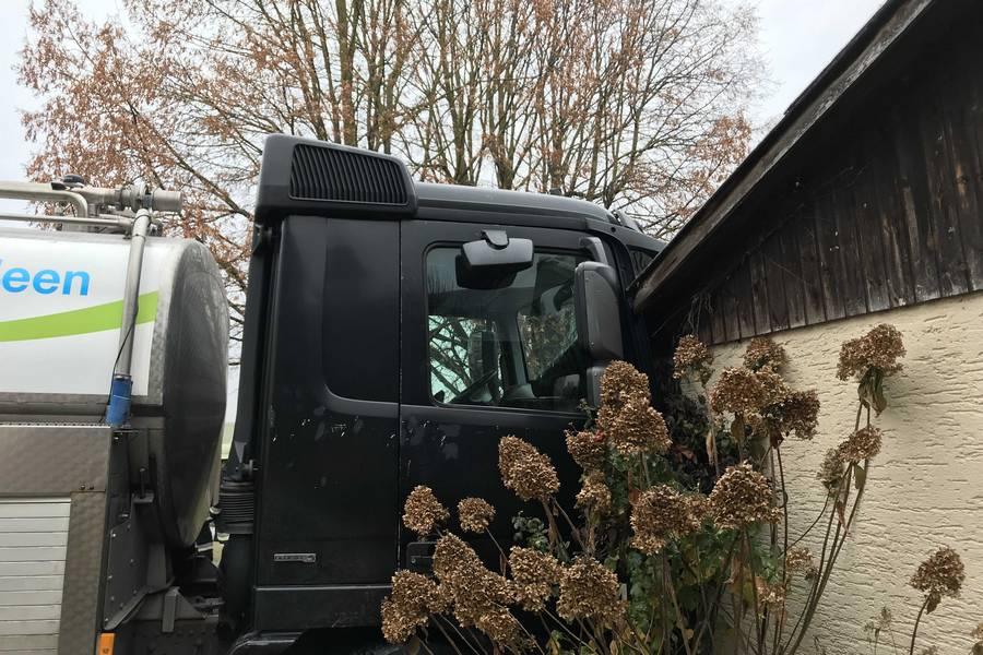 LKW an Garagenwand geprallt, kein Einsatz für Feuerwehr erforderlich
