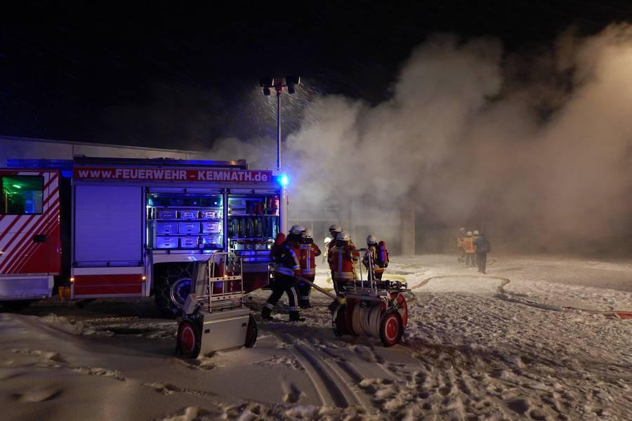 Bereits beim Eintreffen der ersten Feuerwehrleute quoll dichter Brandrauch aus dem rund 50 mal 25 Meter großen Gebäudekomplex eines in der Rohrwiesen im Kemnather Industriegebiet angesiedelten Speditionsbetriebes. Wie die Polizei vermeldet, so bemerkte ein aufmerksamer Verkehrsteilnehmer am Samstagmorgen eine starke Rauchentwicklung aus der Firmenhalle.