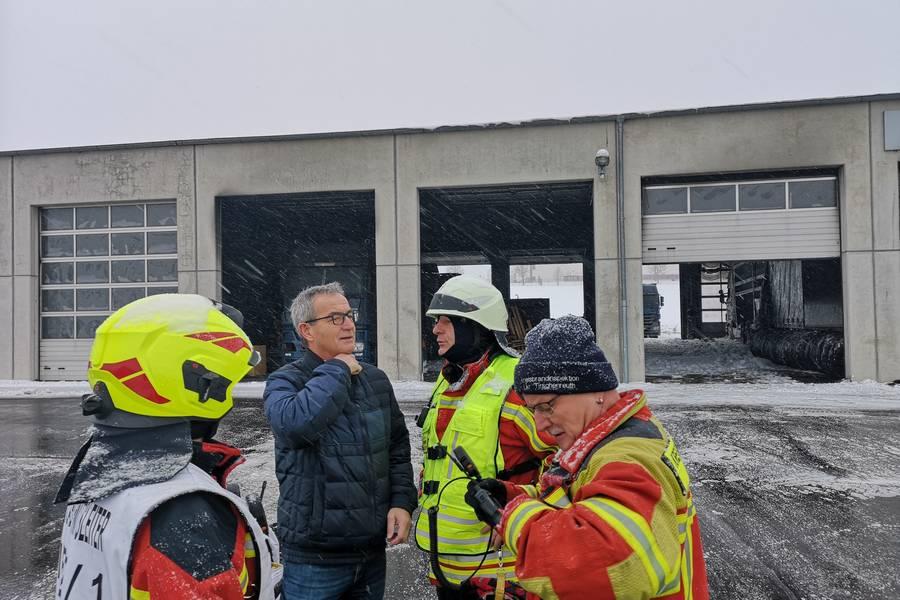 Glücklicherweise hatte keiner der in der Halle abgestellten Lkw´s gefährliche Stoffe geladen. Lediglich die großen Kraftstofftanks und eine geöffnete Montagegrube waren letztere Gefahrenquellen. Nach rund zweieinhalb Stunden konnten die ersten Rettungskräfte abrücken. Bis über die Mittagszeit hinaus waren die Feuerwehrleute der örtlichen Feuerwehr Kemnath mit Nachlöscharbeiten beschäftigt. Bürgermeister Werner Nickl machte sich in den Vormittagsstunden ein Bild von der Lage an der Brandstelle und informierte sich bei der Feuerwehrführung und den Beteiligten über den Ablauf.